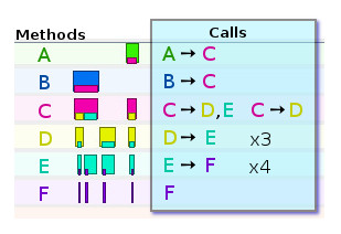 mainly through box-in-box views of method call interactions and patterns.